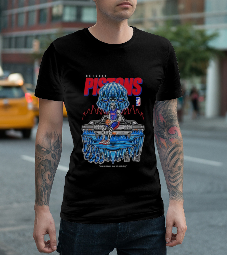 Detroit Pistons Icy Skull Basketball Car Graphic T-Shirt
