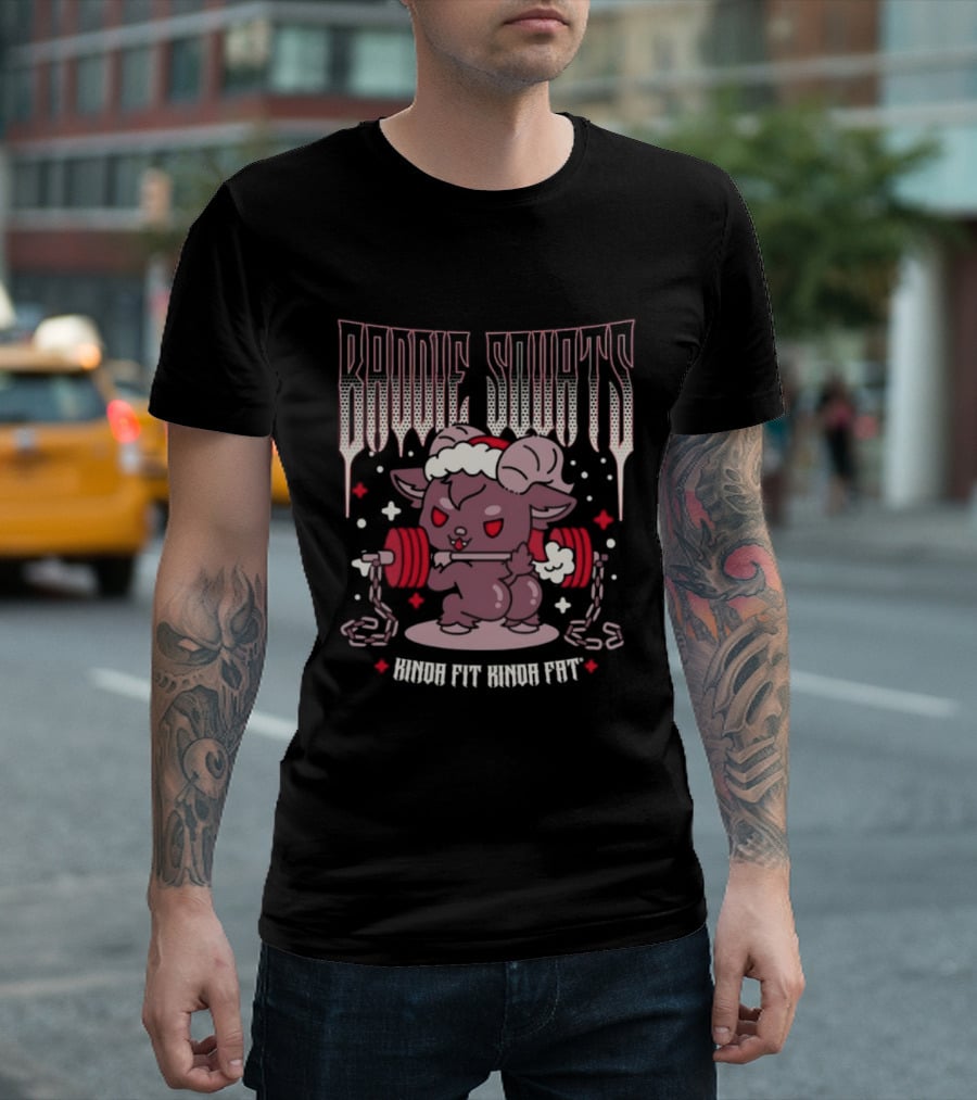 Baddie Squats Kinda Fit Kinda Fat Demon Lifting Weights Festive Santa Hat T-Shirt