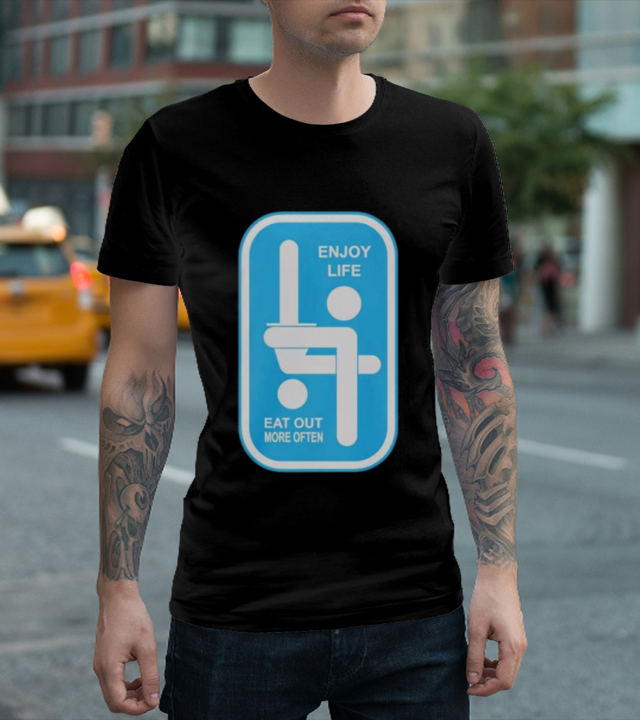 Enjoy Life Eat Out More Often Blue Sign With Humorous Symbol T-Shirt