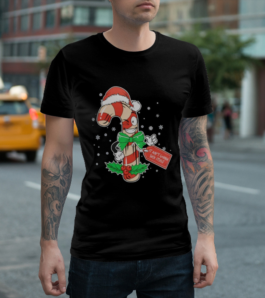 Cheeky Christmas Candy Cane Santa Hat It Ain’t Gonna Suck Itself T-Shirt