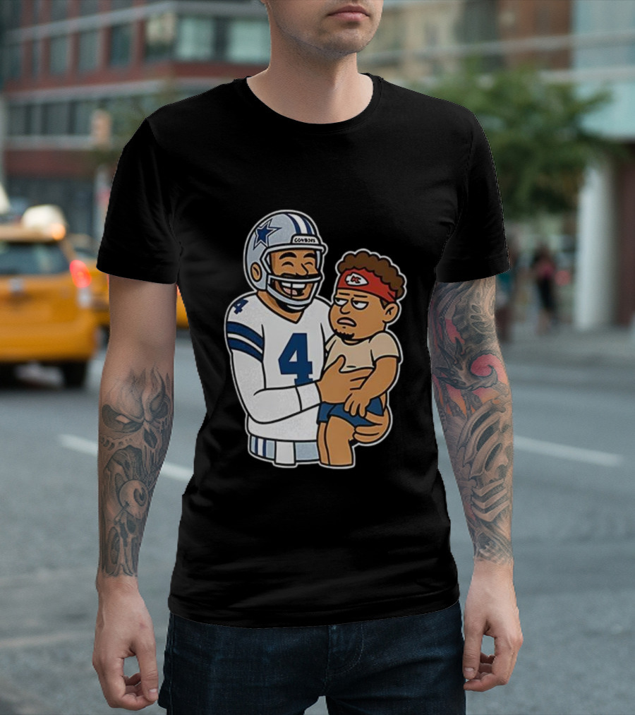 Dak Prescott Cowboys Carrying Baby Chiefs Player Sketch T-Shirt