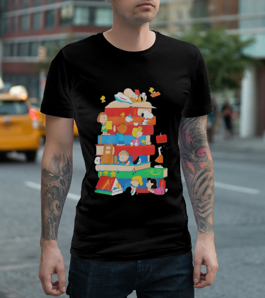 Snoopy Friends Peanuts Book Stack Reading Adventure T-Shirt