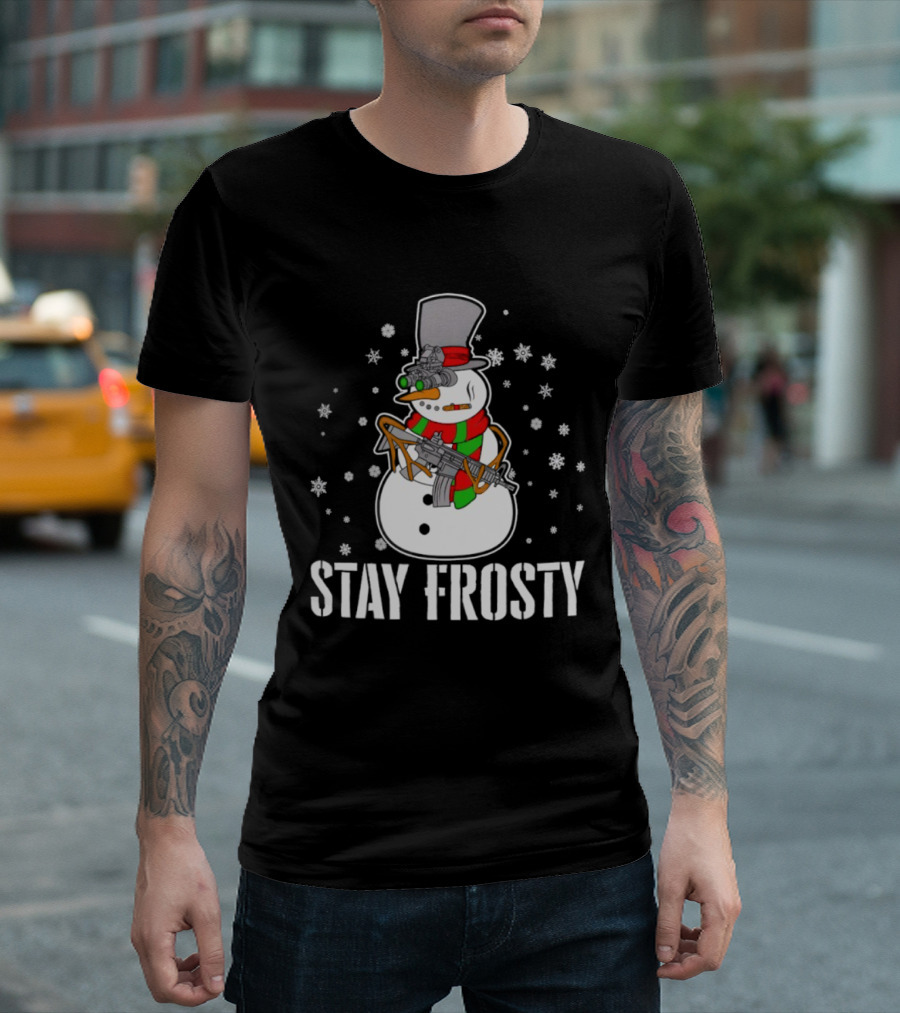 Stay Frosty Snowman Christmas Humor Gun Snowflakes T-Shirt