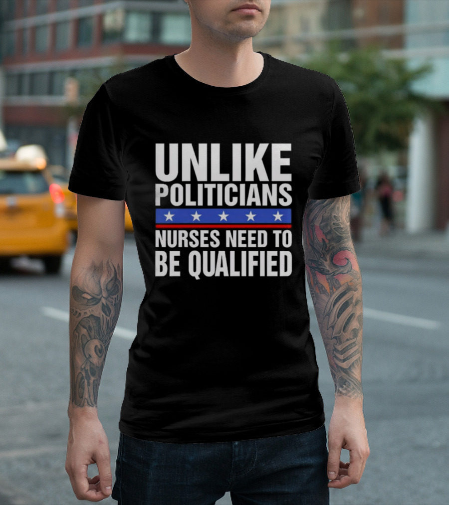 UNLIKE POLITICIANS NURSES NEED TO BE QUALIFIED STAR SYMBOL Sarcasm T-Shirt