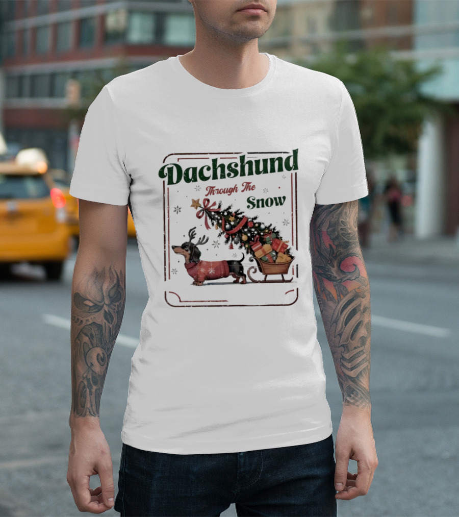 Dachshund Through The Snow Xmas Holiday Sled Presents T-Shirt
