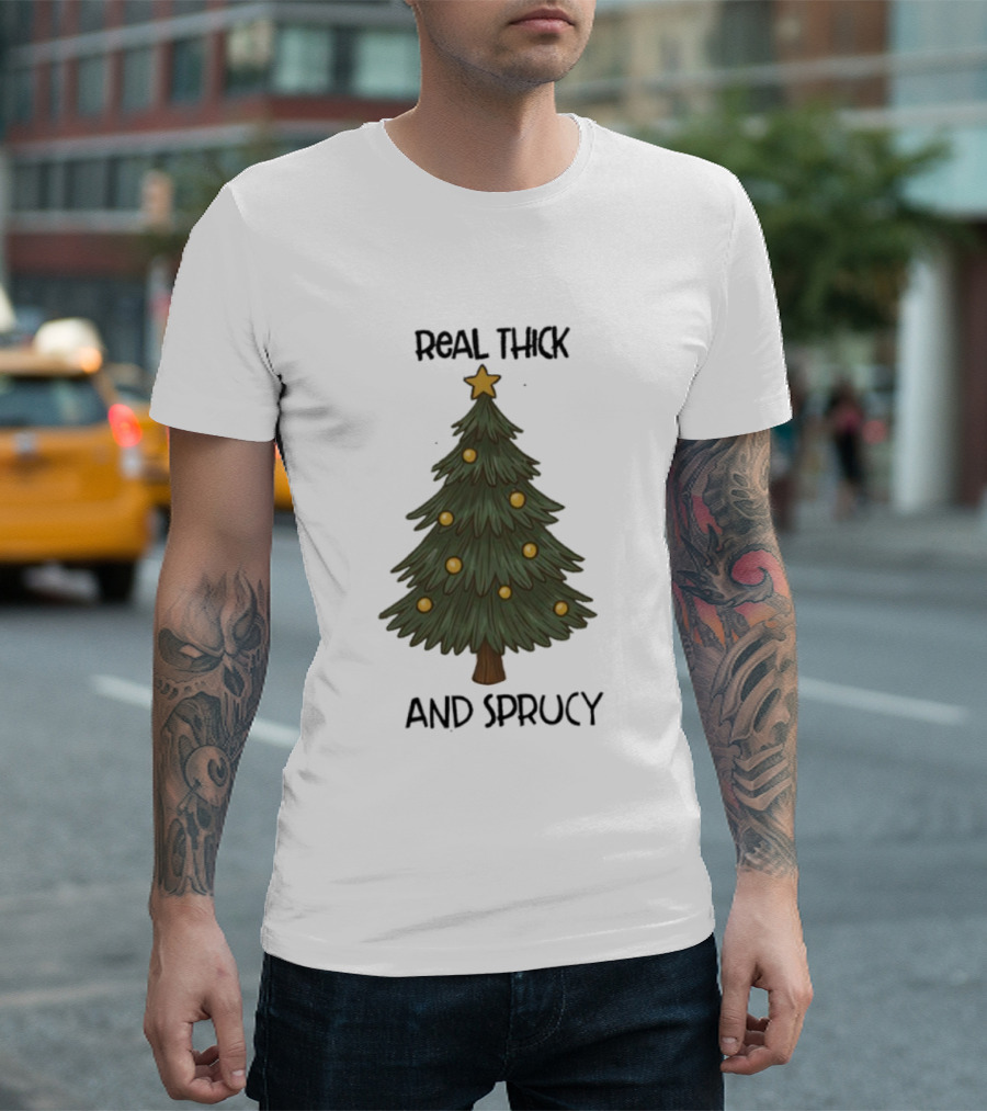 Real Thick And Sprucy Christmas Tree With Star And Ornaments T-Shirt