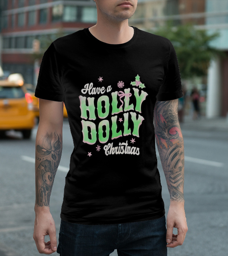 Have A Holly Dolly Christmas Holiday Season Green Pink Decor T-Shirt