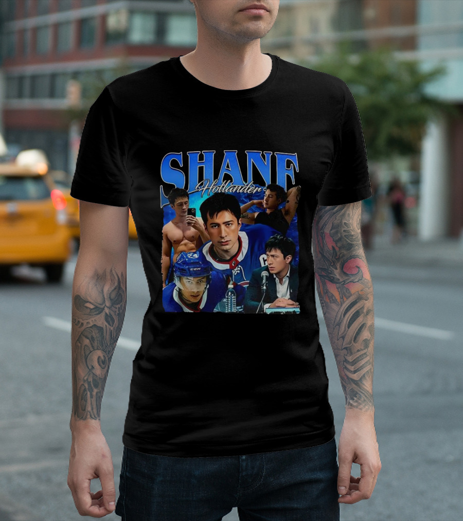 Shane Hollander Heated Rivalry TV Series Iconic Moments T-shirt — on-model street pose, front view.