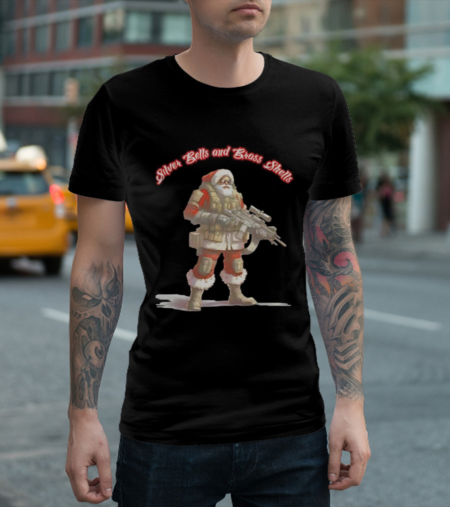 Silver Bells And Brass Shells Armed Santa Christmas T-Shirt