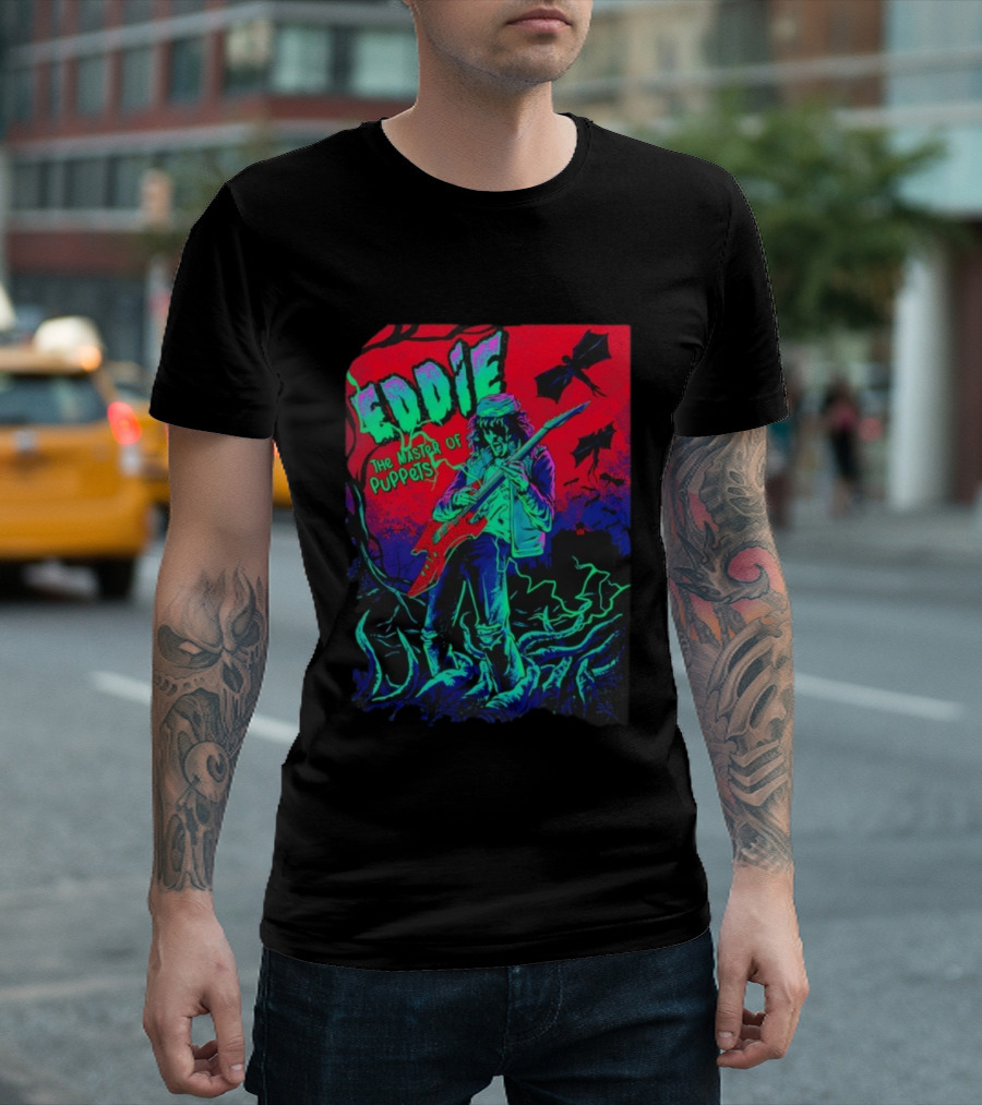 Eddie The Master Of Puppets Vintage Style Electric Guitar Player With Bats T-Shirt