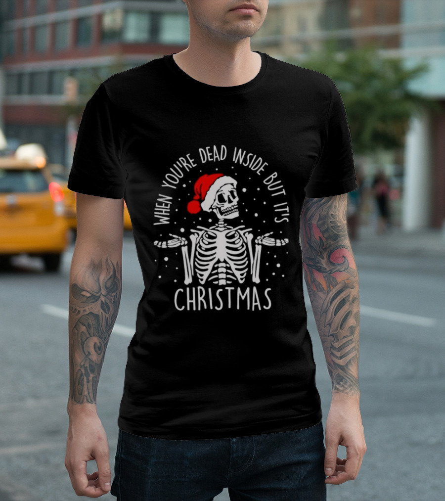 When You're Dead Inside But It's Christmas Skeleton Santa Hat T-Shirt