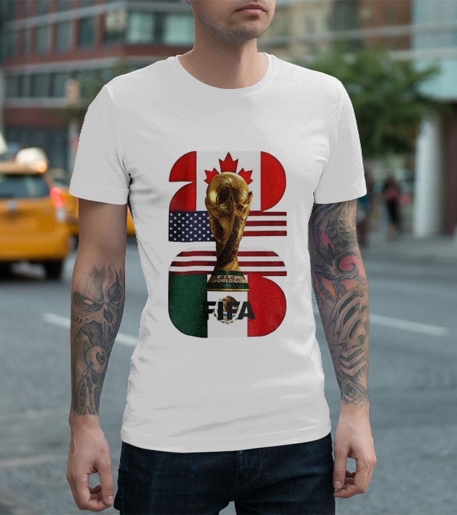 FIFA World Cup 2026 Canada USA Mexico Trophy Flags T-Shirt