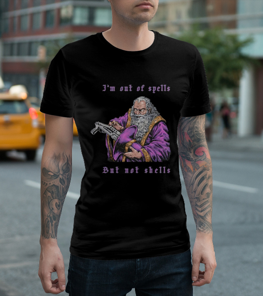I'm Out Of Spells But Not Shells Wizard With Gun Humor T-Shirt
