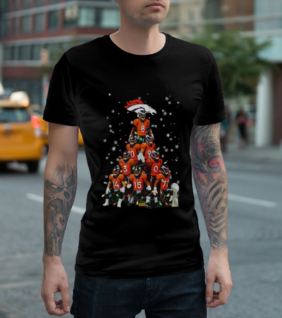 Broncos Super Bowl Trophy Christmas Tree Players Football Fan Apparel T-Shirt