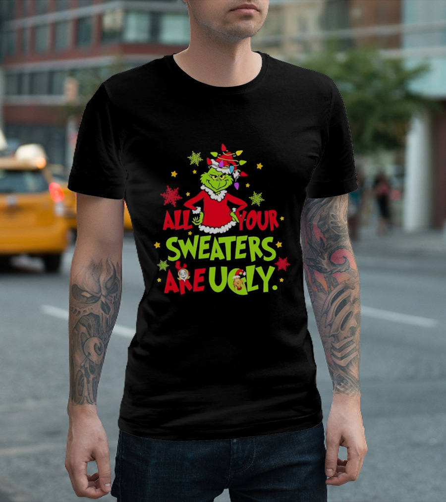 Grinch All Your Sweaters Are Ugly Christmas Lights Hat T-Shirt