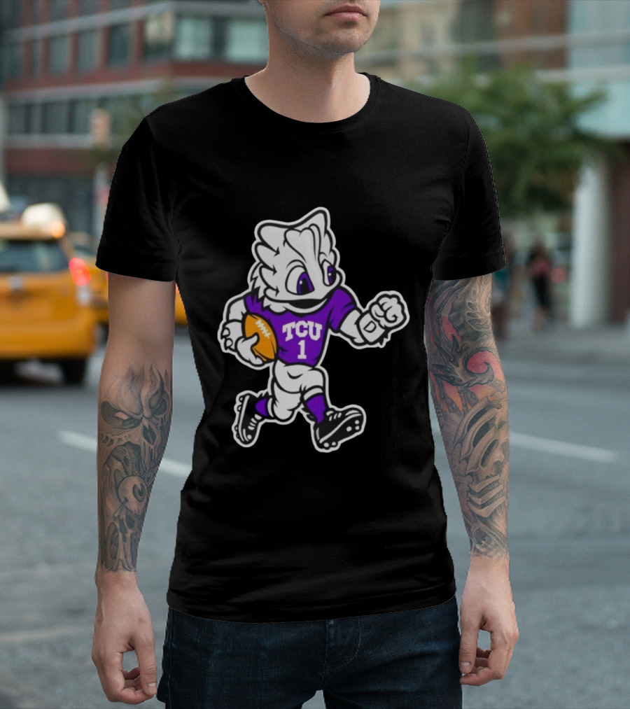 TCU SuperFrog Mascot Football Player With TCU 1 Jersey T-Shirt