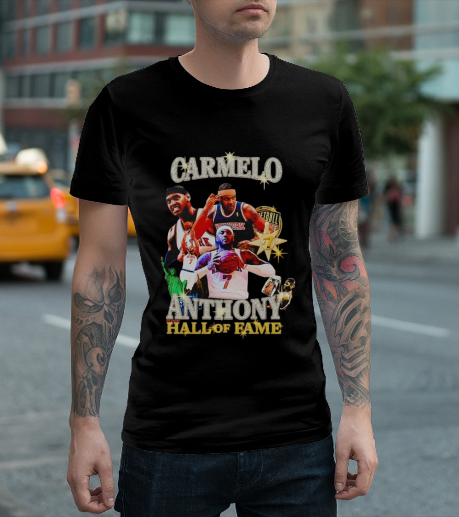 Carmelo Anthony Hall Of Fame New York Knicks Basketball Legend Statue Of Liberty 7 Star Player T-Shirt