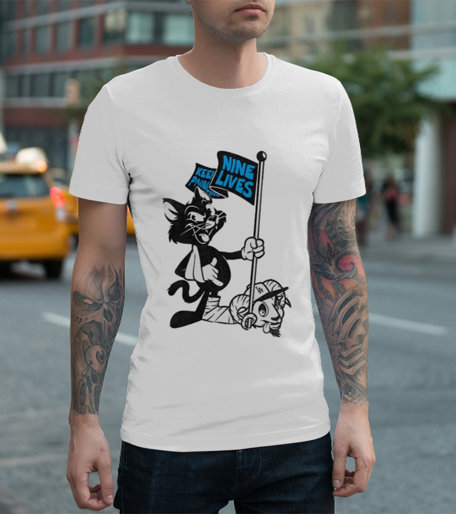 Roaring Riot Nine Lives Keep Pounding Carolina Panthers Beat LA Dodgers Goat T-Shirt