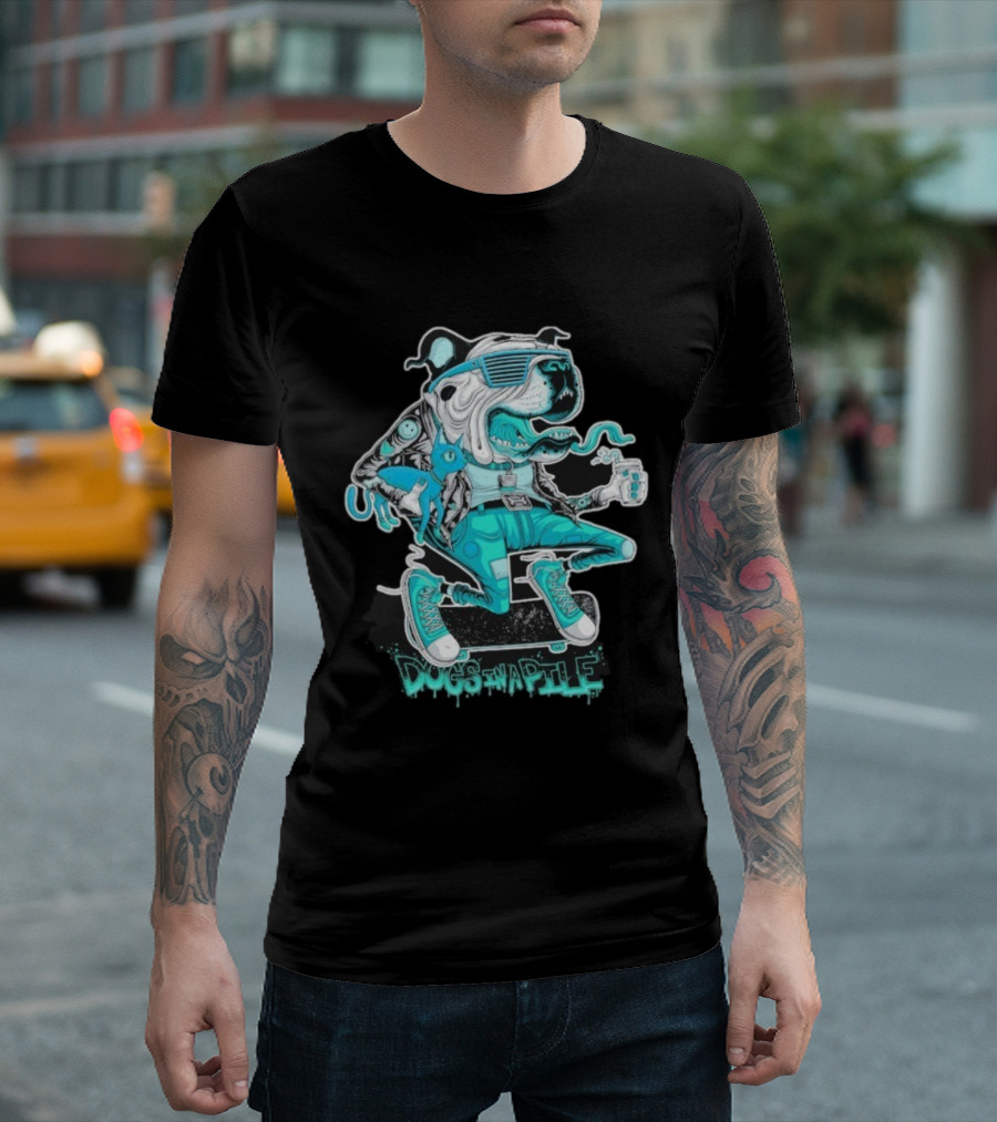 Dogs In Apile Skater Dog Vintage Style Sunglasses Cool Attire T-Shirt