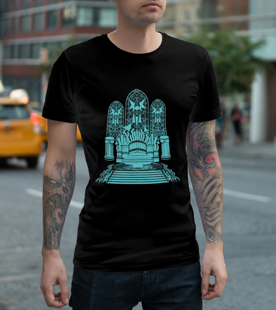 Stained Glass Organ Throne With Gothic Cathedral Window Arches T-Shirt