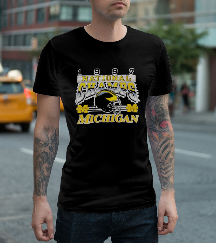 1997 Michigan National Champs Wolverines Football Helmet Vintage T-Shirt