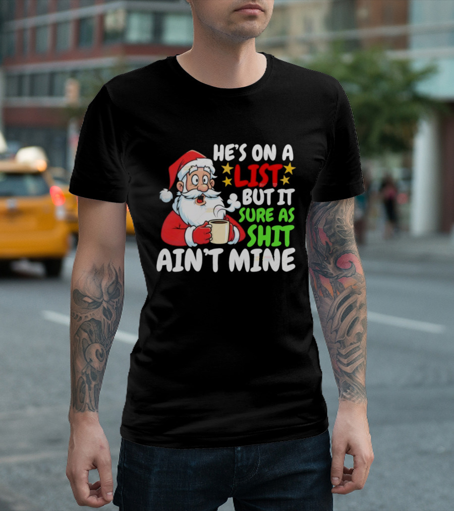 Christmas Santa He's On A List But It Sure As Shit Ain't Mine Iconic Holiday Phrase T-Shirt