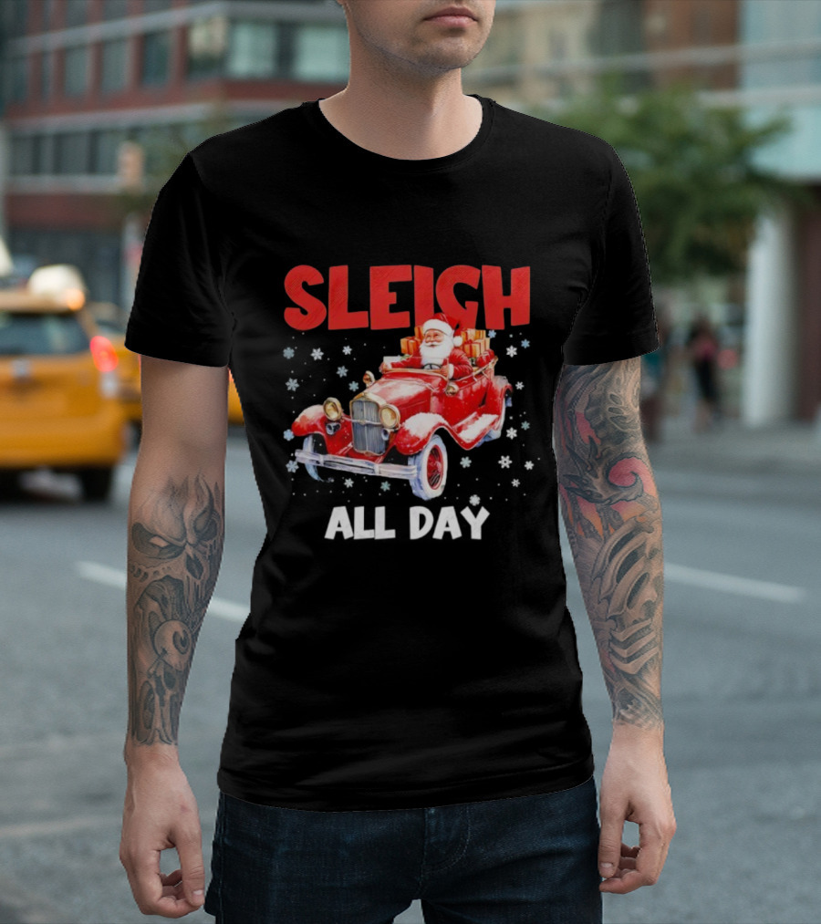 Sleigh Santa Claus Driving Vintage Car Merry Christmas T-Shirt