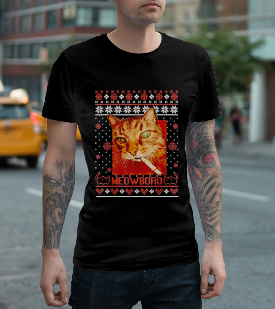Meowboro Smoking Cat Christmas Ugly Funny Holiday T-Shirt