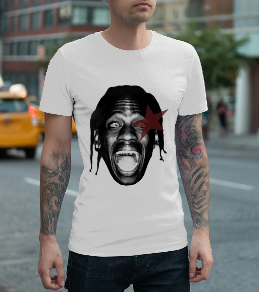 4028 Laflame Red Star Eye Black And White Face Graphic T-Shirt
