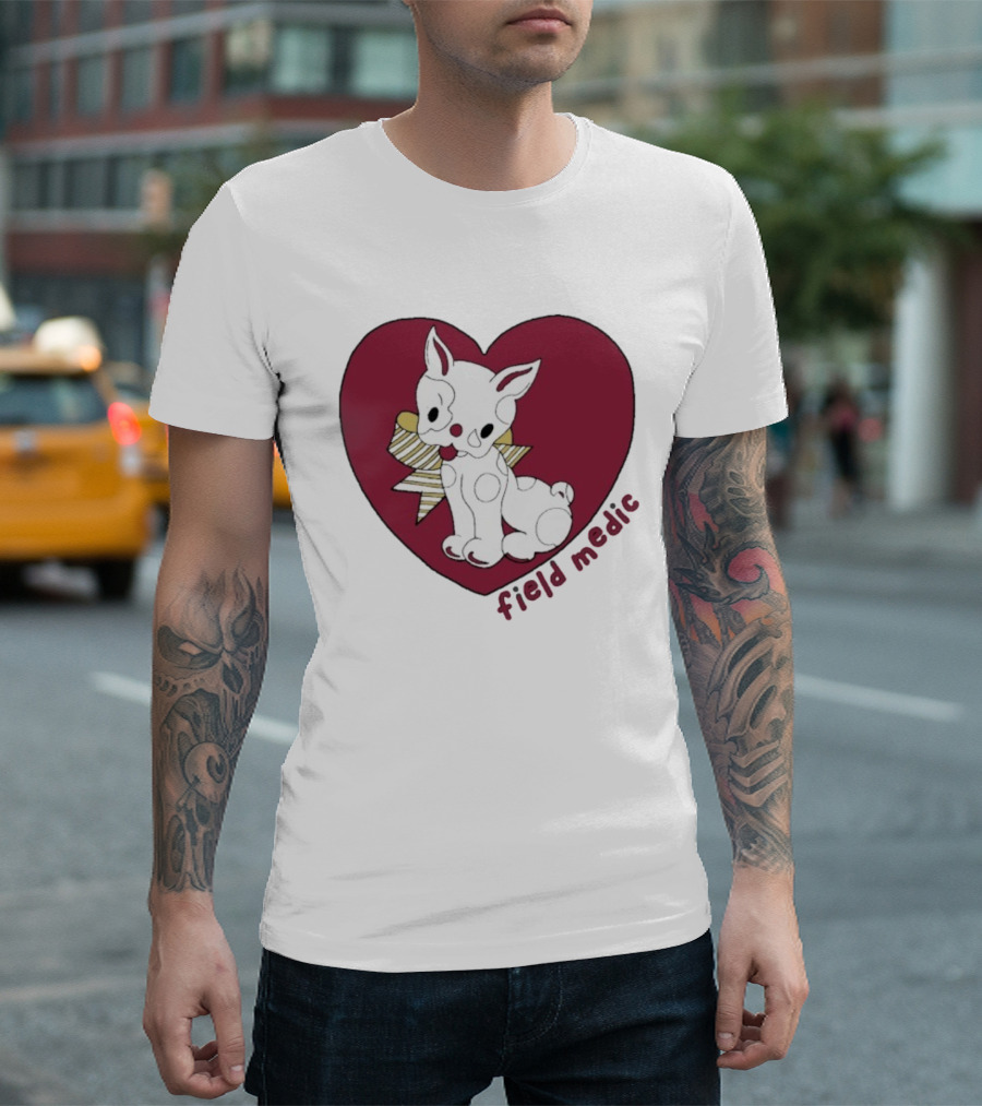 Field Medic Cute Dog Heart Bow Patchwork Style T-Shirt
