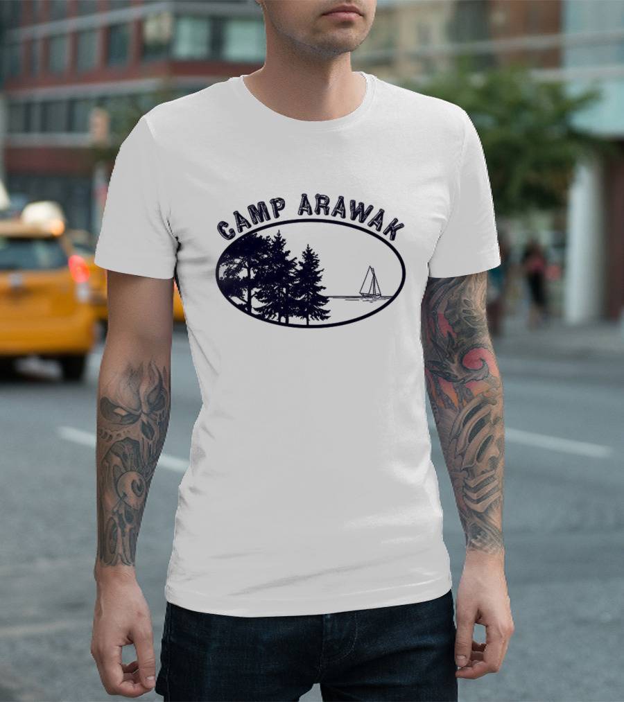 Camp Arawak Trees And Sailboat Scene T-Shirt