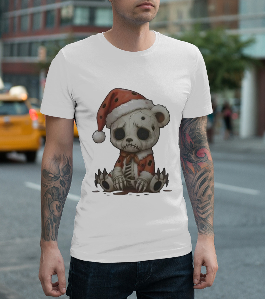 Merry & Boney Christmas Creepy Skeleton Teddy Bear Santa Hat T-Shirt