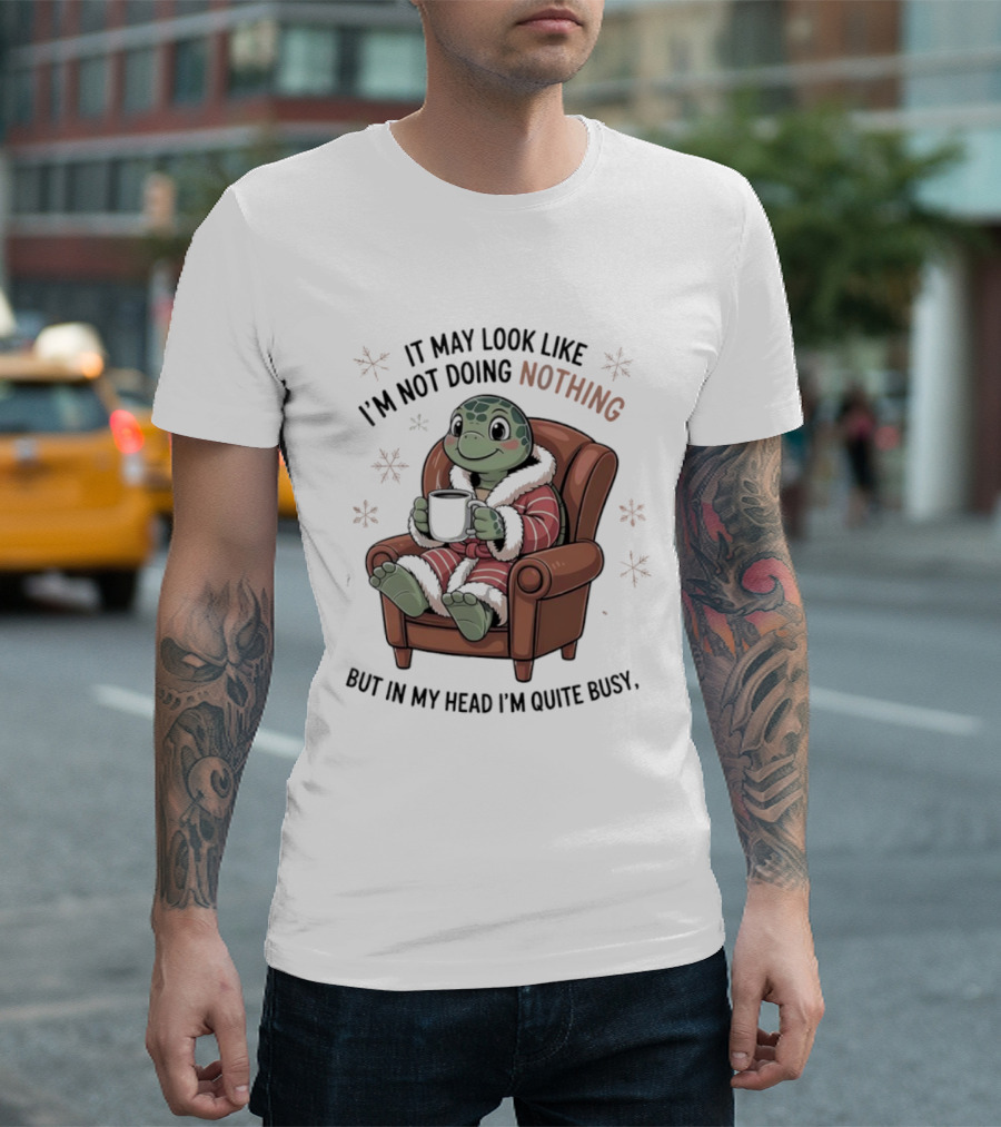 Turtle It May Look Like I’m Not Doing Nothing But In My Head I’m Quite Busy Comfy Armchair Cozy Robe T-Shirt