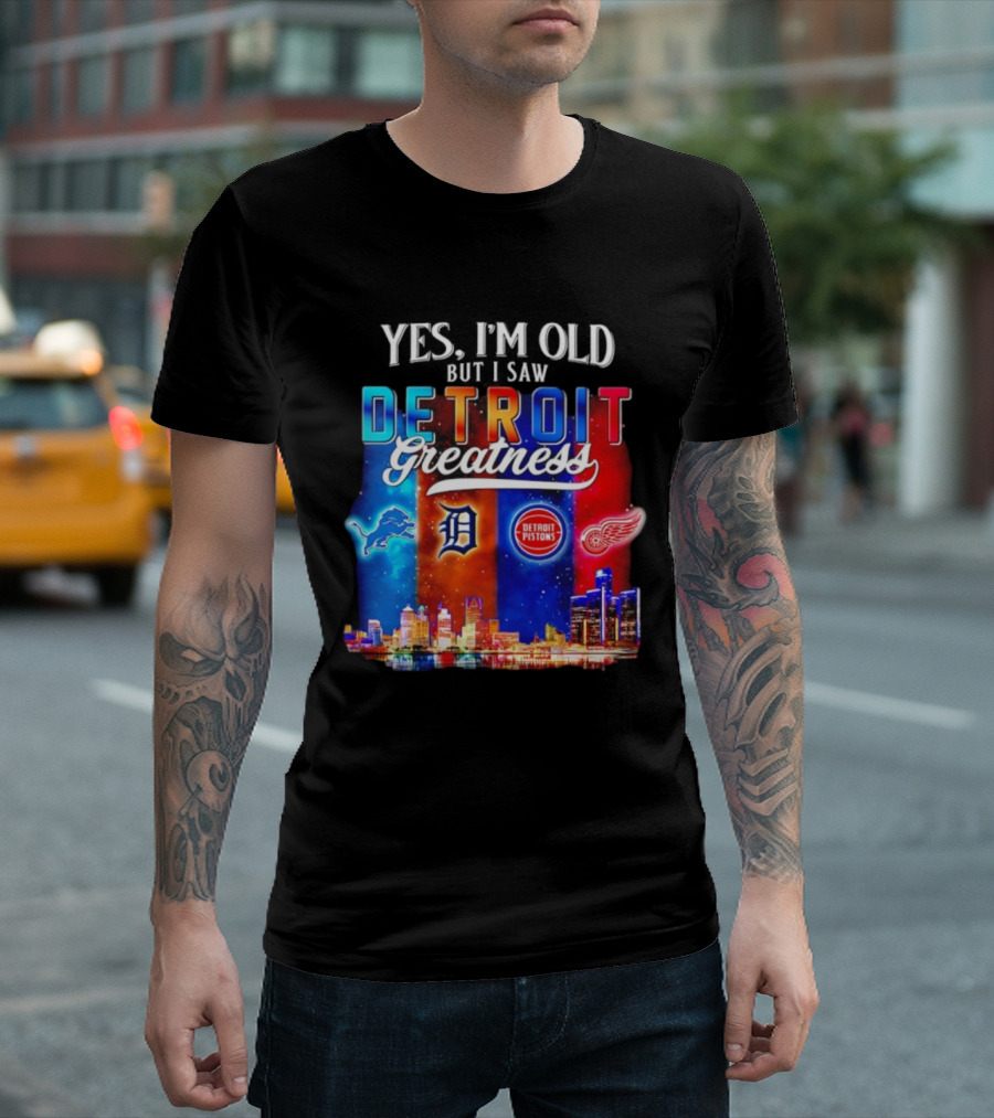 Yes I’m Old But I Saw Detroit Greatness Lions Tigers Pistons Red Wings Skyline T-Shirt