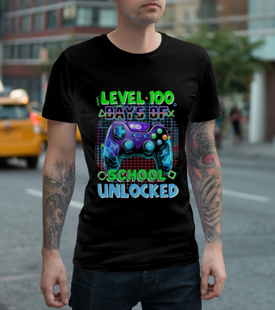 Level 100 Days Of School Unlocked Video Games Controller T-Shirt
