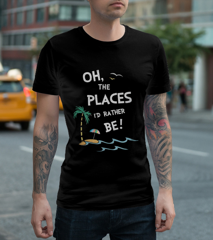 Oh The Places I'd Rather Be Beach Island Palm Tree Waves Umbrella T-Shirt