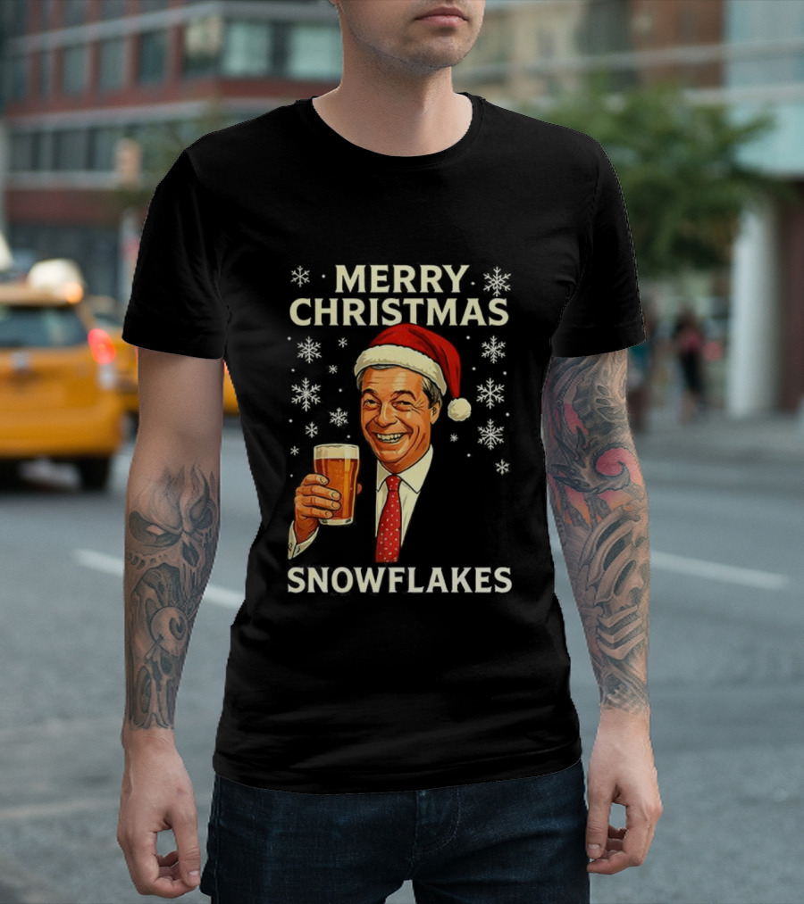 Merry Christmas Snowflakes Nigel Farage Raises His Glass Caricature T-Shirt
