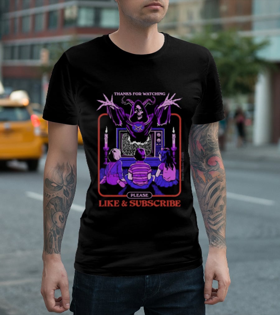 Thanks For Ing Please Like And Subscribe Live Retro Horror TV Scene With Ghastly Figure T-Shirt