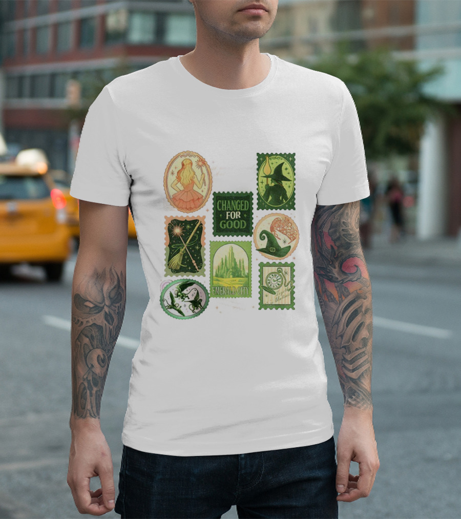 Wicked Changed For Good Emerald City Merry Christmas Glinda Elphaba Wizard Wand Witch Hat T-Shirt