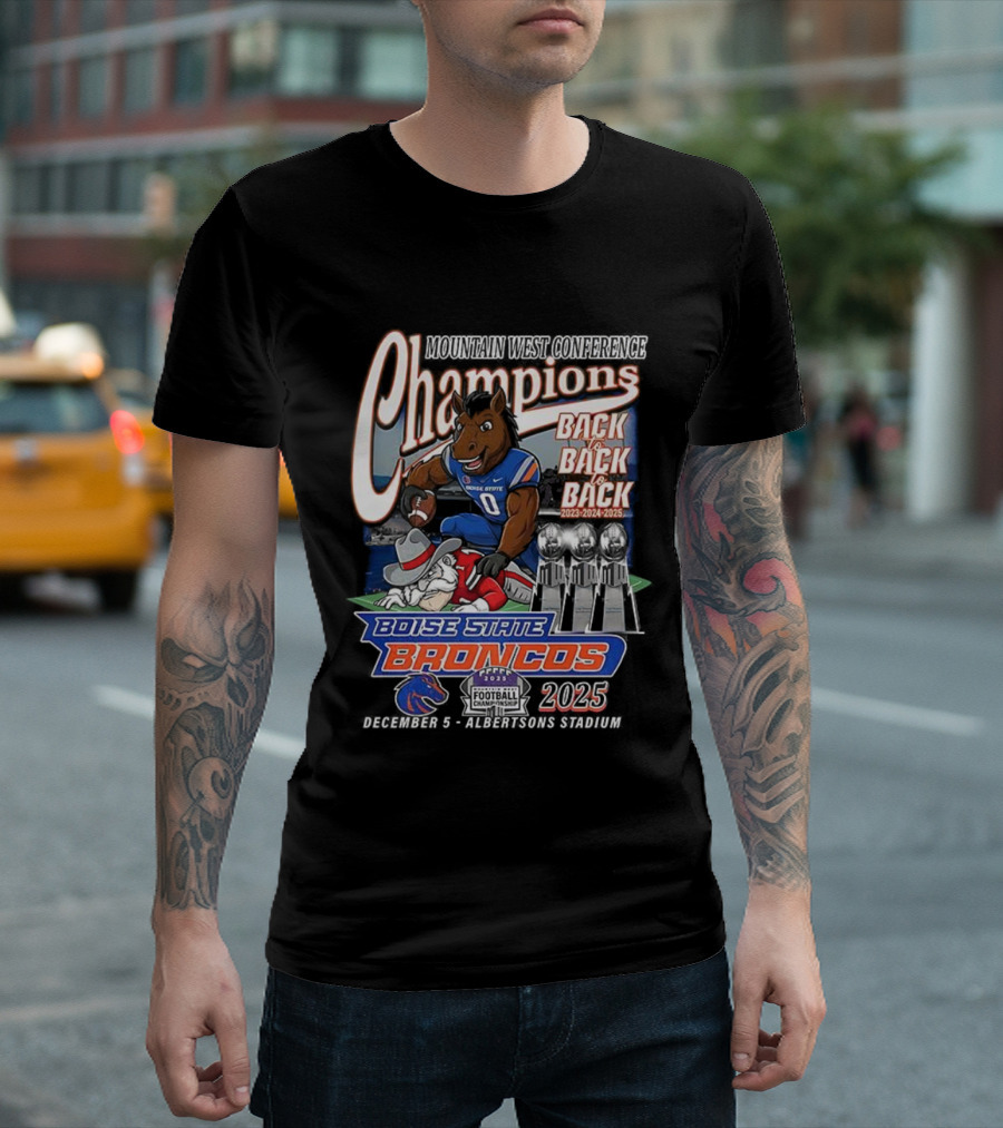 Boise State Broncos Champions Back To Back 2023 2024 2025 Mountain West Conference T-Shirt