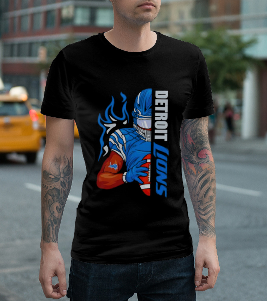 Detroit Lions Ball Football Player Stylish Half Blue T-Shirt