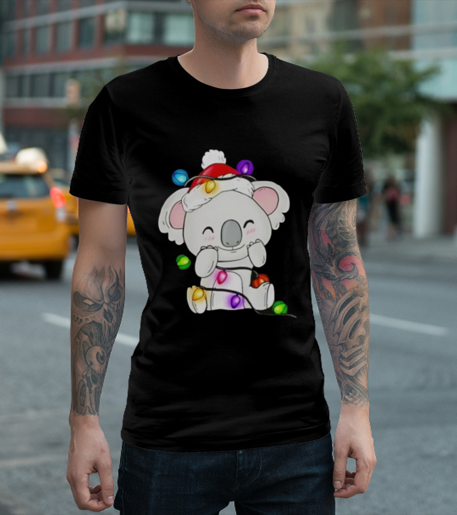 Koala Lover Christmas Lights Festive Santa Hat Cute Holiday Style T-Shirt