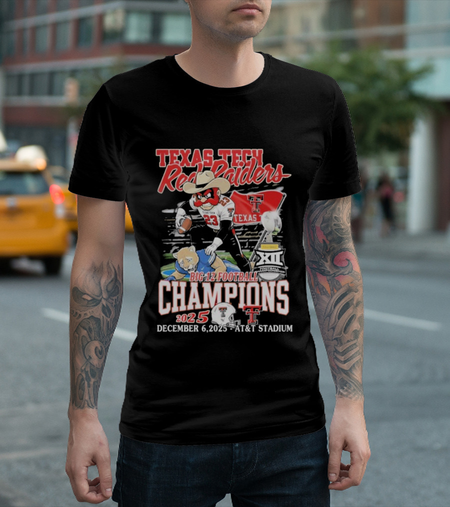 Texas Tech Red Raiders Big 12 Football Champions 2025 Victory Over Brigham Young Cougars December 6 Jones AT&T Stadium T-Shirt
