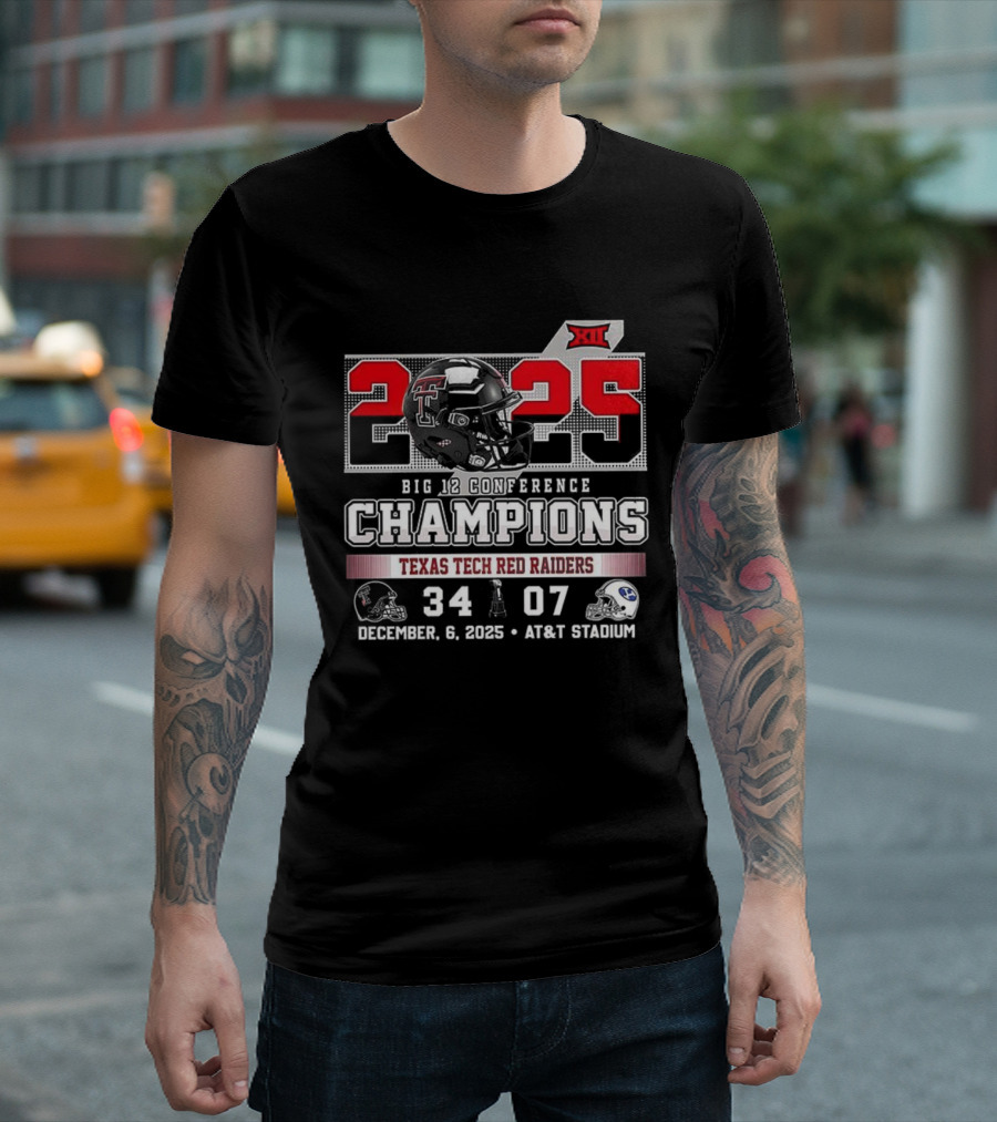 Texas Tech Red Raiders 2025 Big 12 Champions 34-07 Victory Over BYU December 6 AT&T Stadium T-Shirt