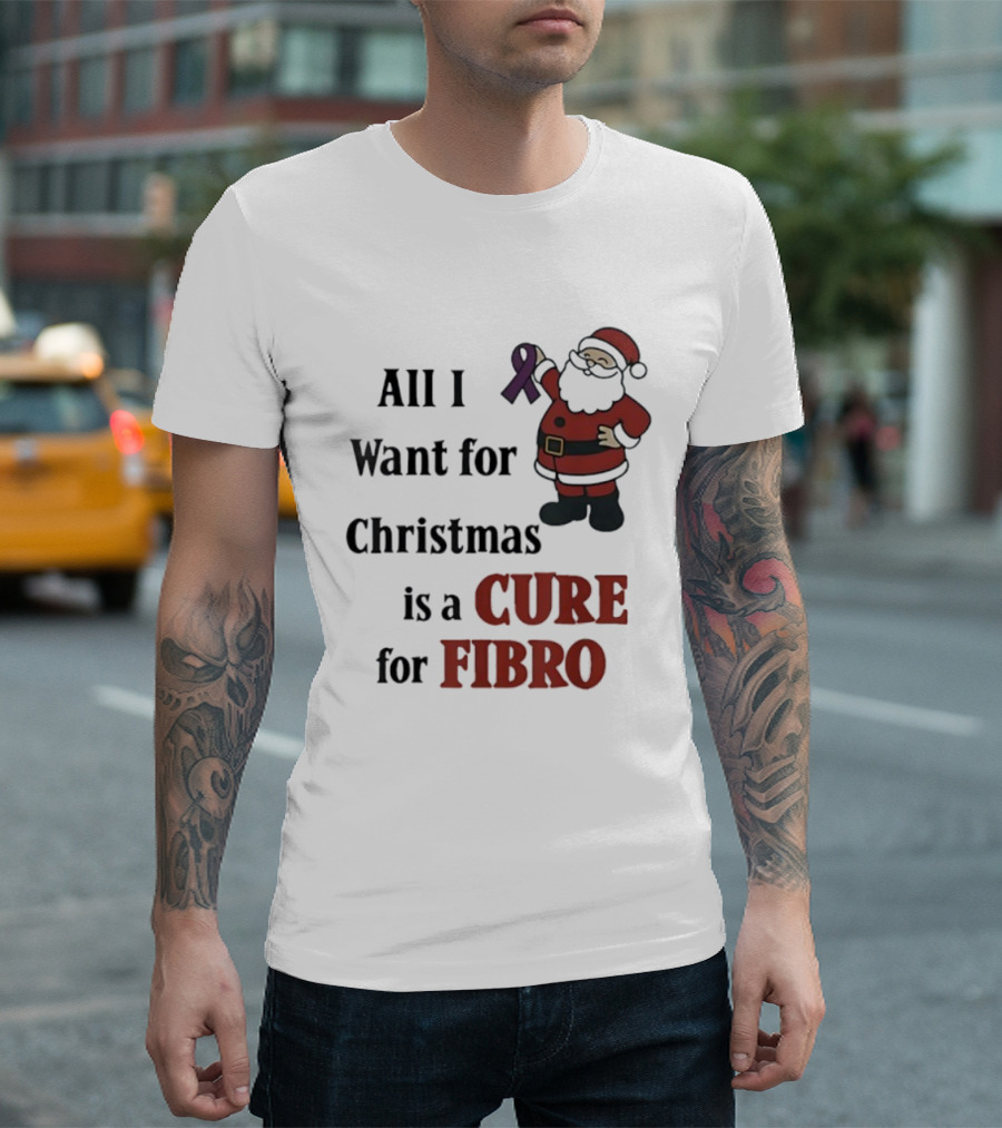 Santa Claus All I Want For Christmas Is A Cure For Fibro Purple Ribbon T-Shirt