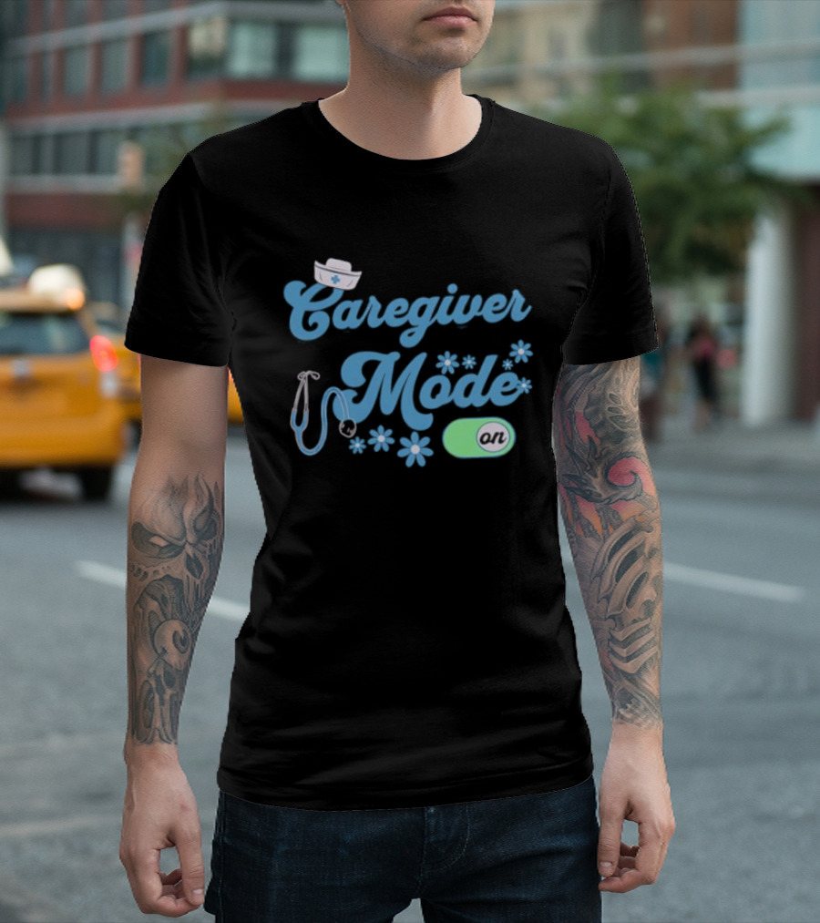 Caregiver Mode ON Nurse Stethoscope And Flowers T-Shirt