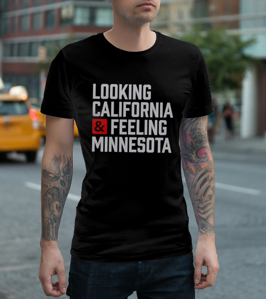 Looking California And Feeling Minnesota Text And Ampersand In Red Box T-Shirt