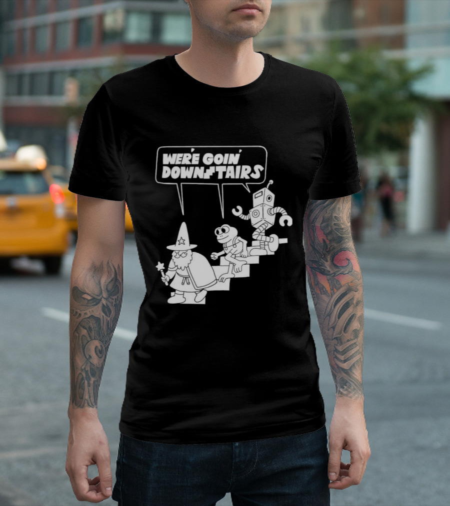We’re Goin’ Downstairs Wizard Frog Robot Walking Down Steps T-Shirt