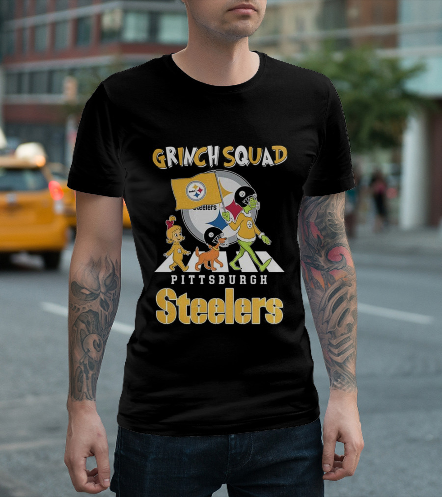Grinch Squad Pittsburgh Steelers Christmas Abbey Road Football Team T-Shirt