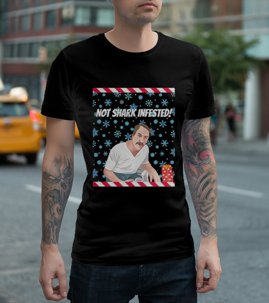 Paul Sykes Not Shark Infested Ugly Christmas Sweater With Festive Gift And Snowflakes T-Shirt